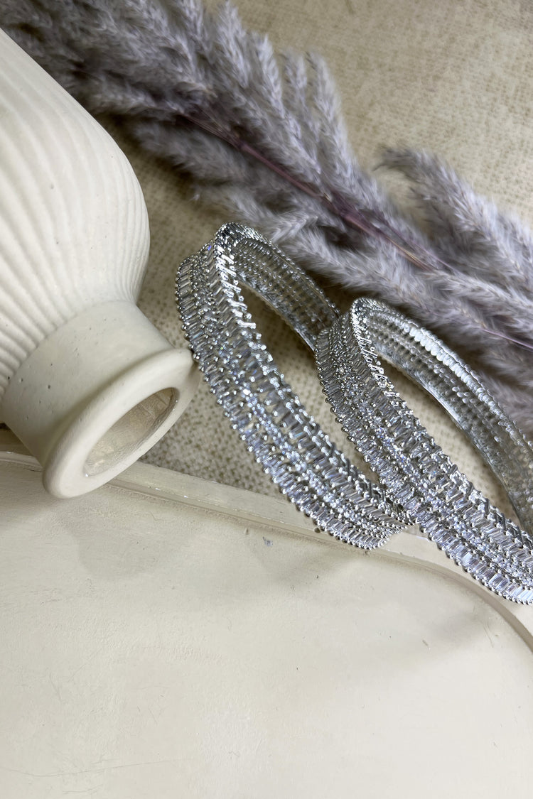 Elevate your elegance with our stunning Radiant Row Bangles — a harmonious blend of classic charm and modern sophistication. Designed to dazzle, each bangle features a graceful lineup of radiant stones that shimmer with every movement, adding a refined sparkle to your wrist. Whether worn solo for a touch of subtle glamour or stacked for a bold statement, these bangles are perfect for both everyday luxury and special occasions.