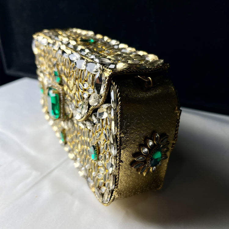 Add a touch of elegance to your look with our Emerald Sparkle Clutch. Designed to shine with every outfit.