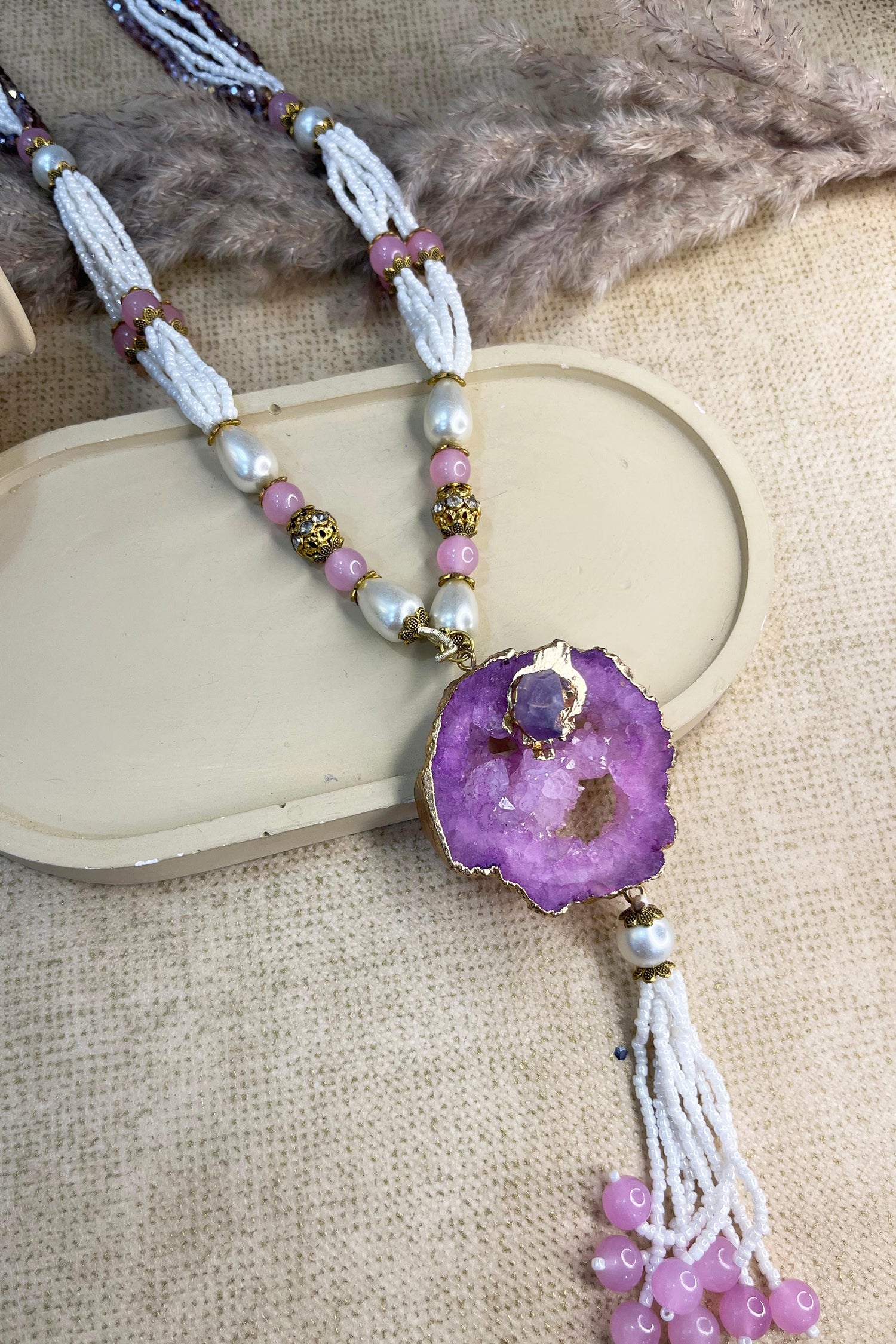 Tiana-Amethyst Mala Elevate your spiritual elegance with our exclusive Tiana-Amethyst Mala—a stunning symphony of deep purple hues and timeless grace. Handcrafted with polished amethyst beads known for their calming energy and protective aura, this mala is more than just jewelry—it's a statement of inner peace and regal charm. Whether worn as a mindful accessory or a sacred companion for meditation, Tiana brings balance, sophistication, and soul to every look.