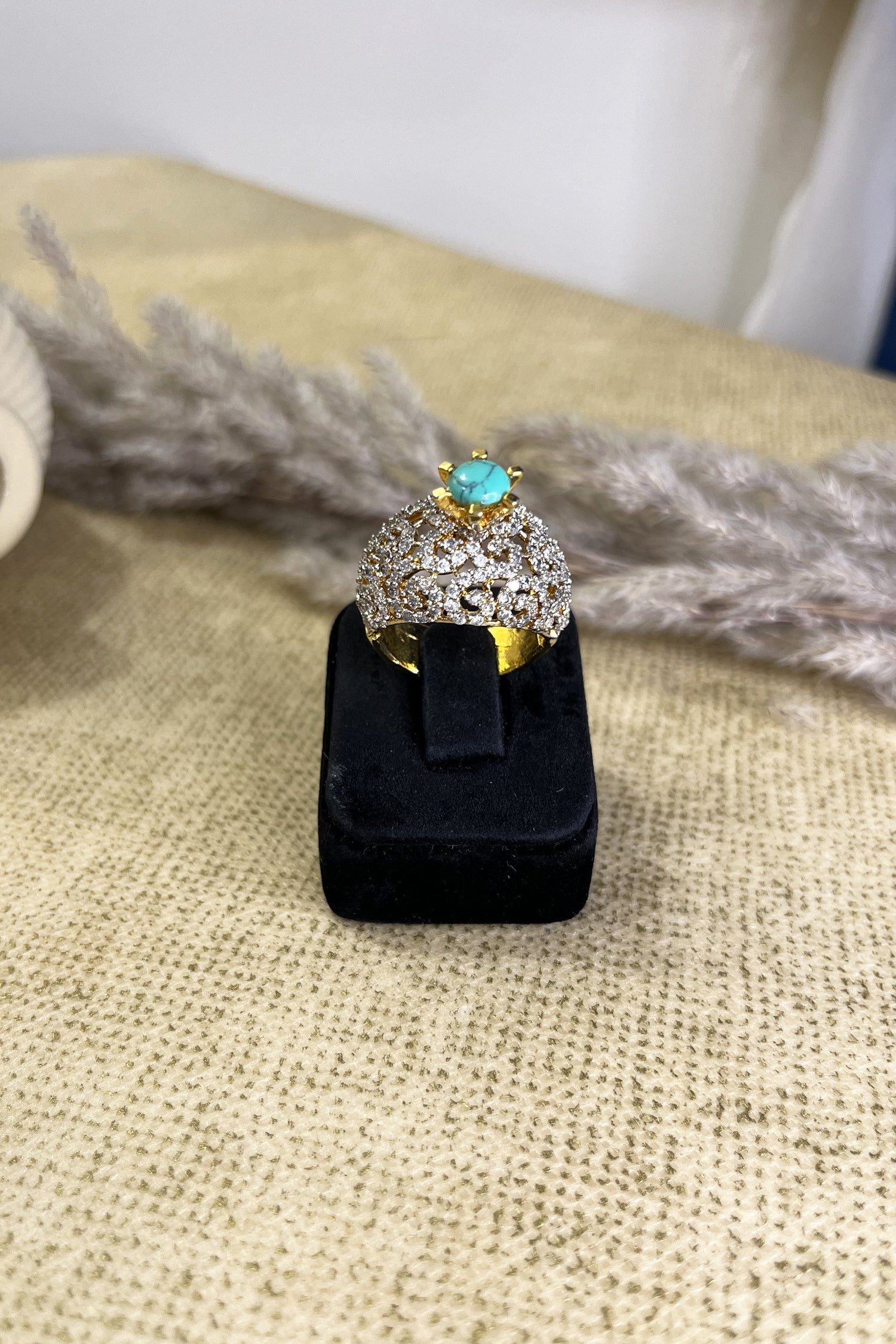 Delicate yet striking, our Azure Bloom Ring captures the serene charm of a blooming garden kissed by the sky. Featuring a radiant floral motif set with cool blue stones and subtle golden accents, this ring is a poetic blend of elegance and grace. Whether worn alone or stacked, it adds a refreshing pop of color and timeless beauty to any ensemble. A true embodiment of nature’s tranquility—designed to bloom on your fingers, forever.
