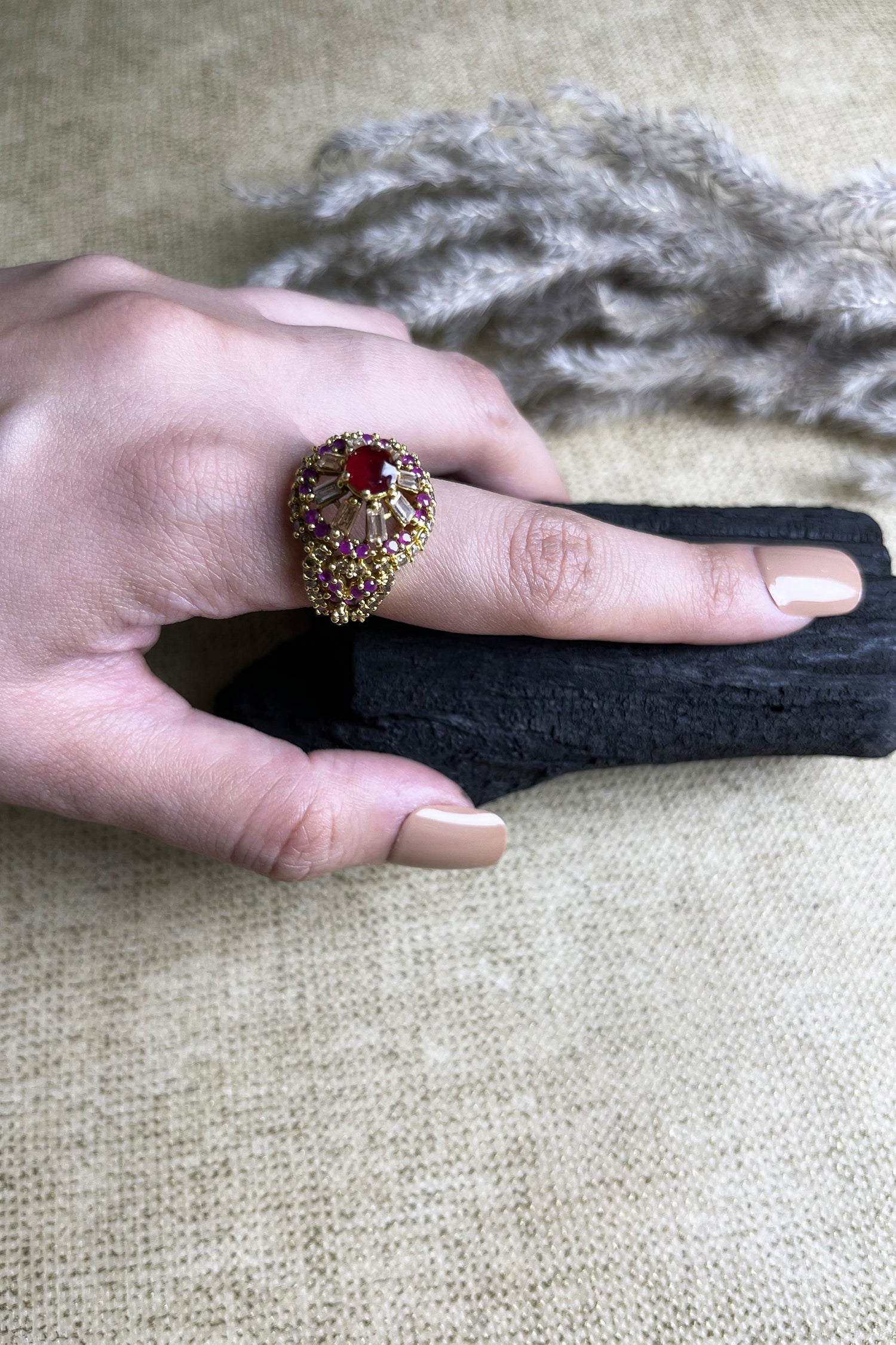 Make a statement with our **Ruby Pop Ring** – a striking blend of vibrant charm and graceful sophistication. Featuring a dazzling ruby-hued stone set in a sleek, polished band, this ring exudes confidence and charisma. Whether you're dressing up for a special occasion or adding a bold accent to your everyday style, the Ruby Pop Ring is designed to turn heads and capture hearts.