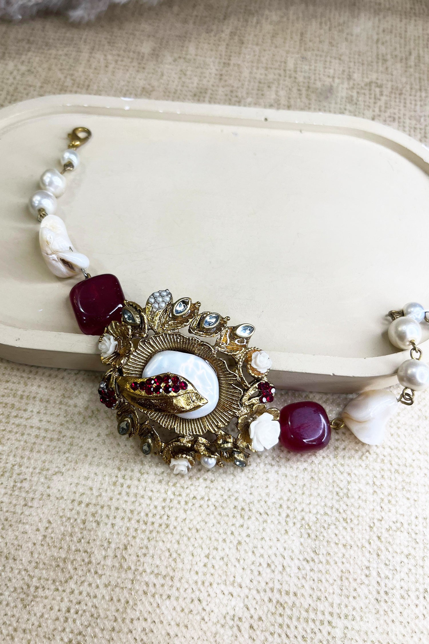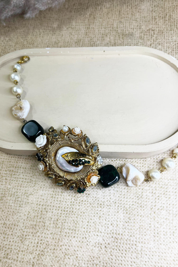 Noor-e-Nigar Bracelet Grace your wrists with the timeless allure of our Noor-e-Nigar Bracelet — a stunning blend of elegance and radiance. Meticulously crafted to capture the essence of feminine charm, this exquisite piece shimmers with delicate details and refined craftsmanship. Whether worn alone for a subtle statement or stacked for added glamour, Noor-e-Nigar adds a touch of sophistication to every moment. A perfect keepsake for those who cherish beauty with a hint of tradition.