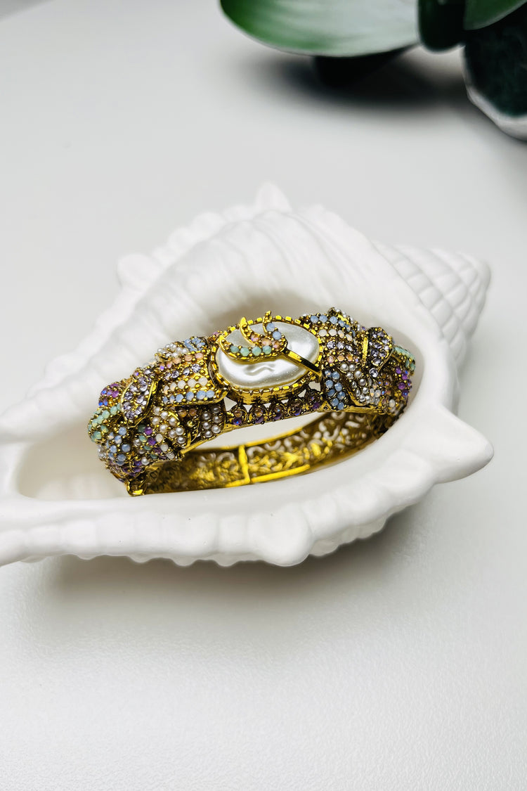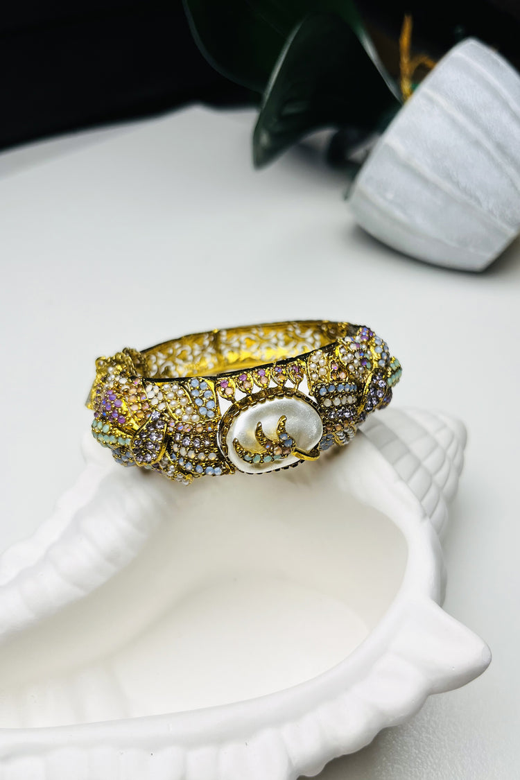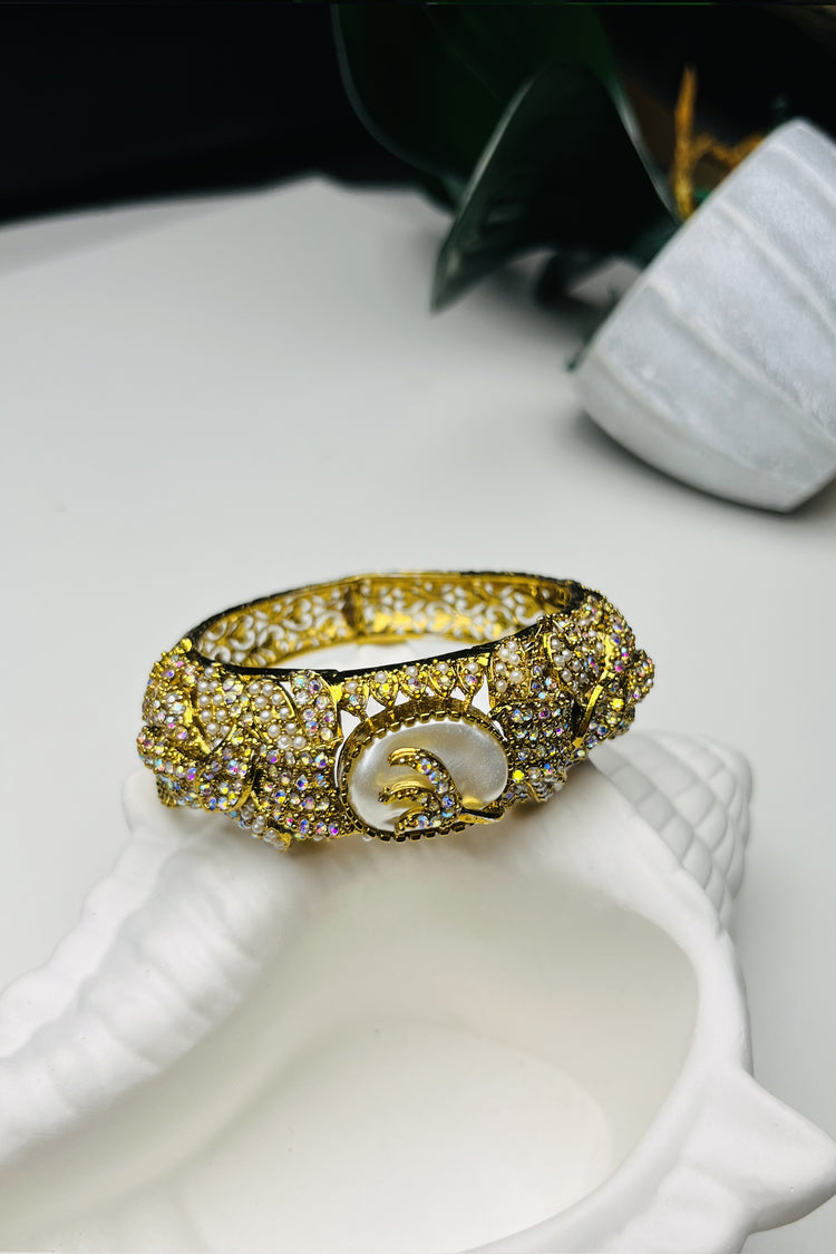 Illuminate your elegance with our Noor-e-Sitara Bracelet, a dazzling embodiment of grace and sophistication. Crafted with exquisite attention to detail, this bracelet sparkles like a constellation of stars, reflecting timeless beauty and charm.